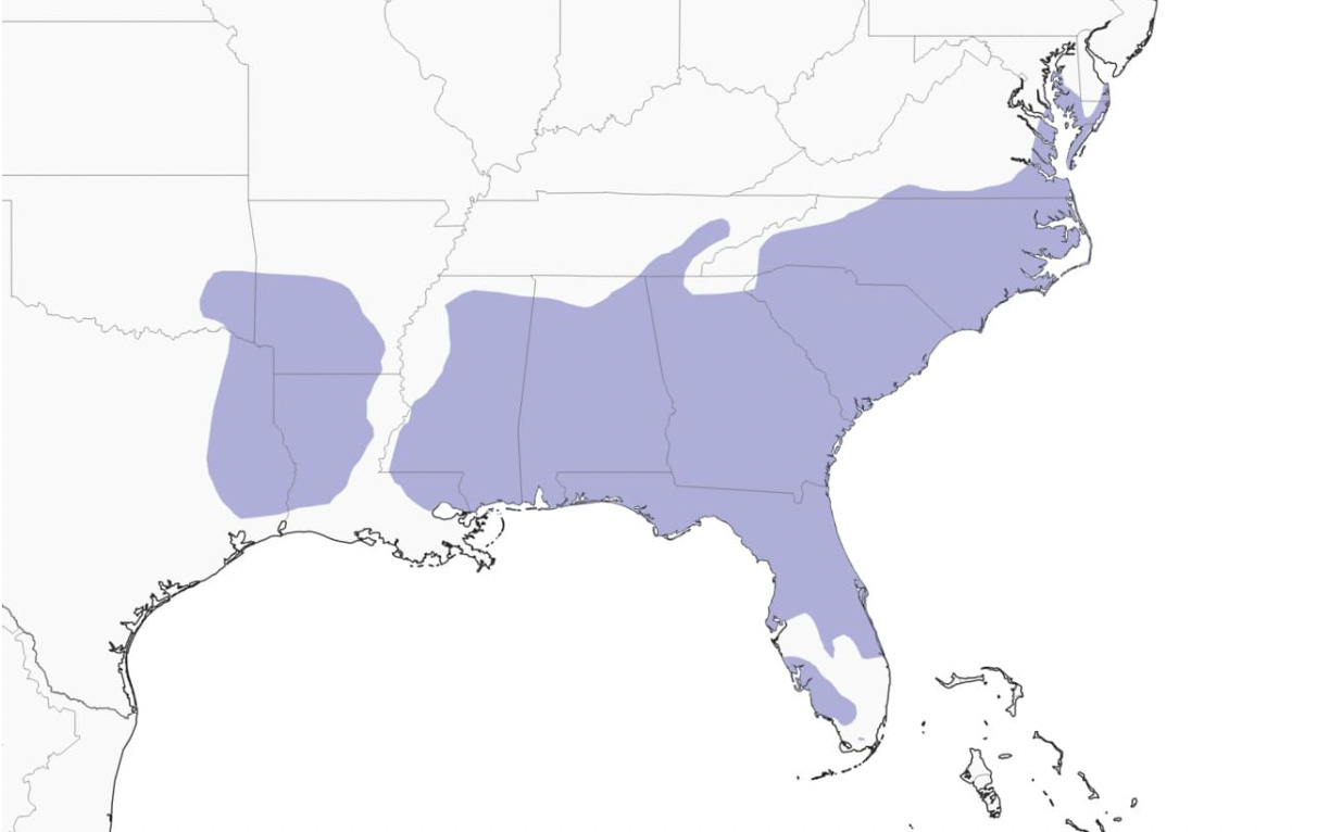 Range: Found in southeastern pine woods from the Chesapeake down into the Carolinas all the way to Florida and East Texas. Observe: