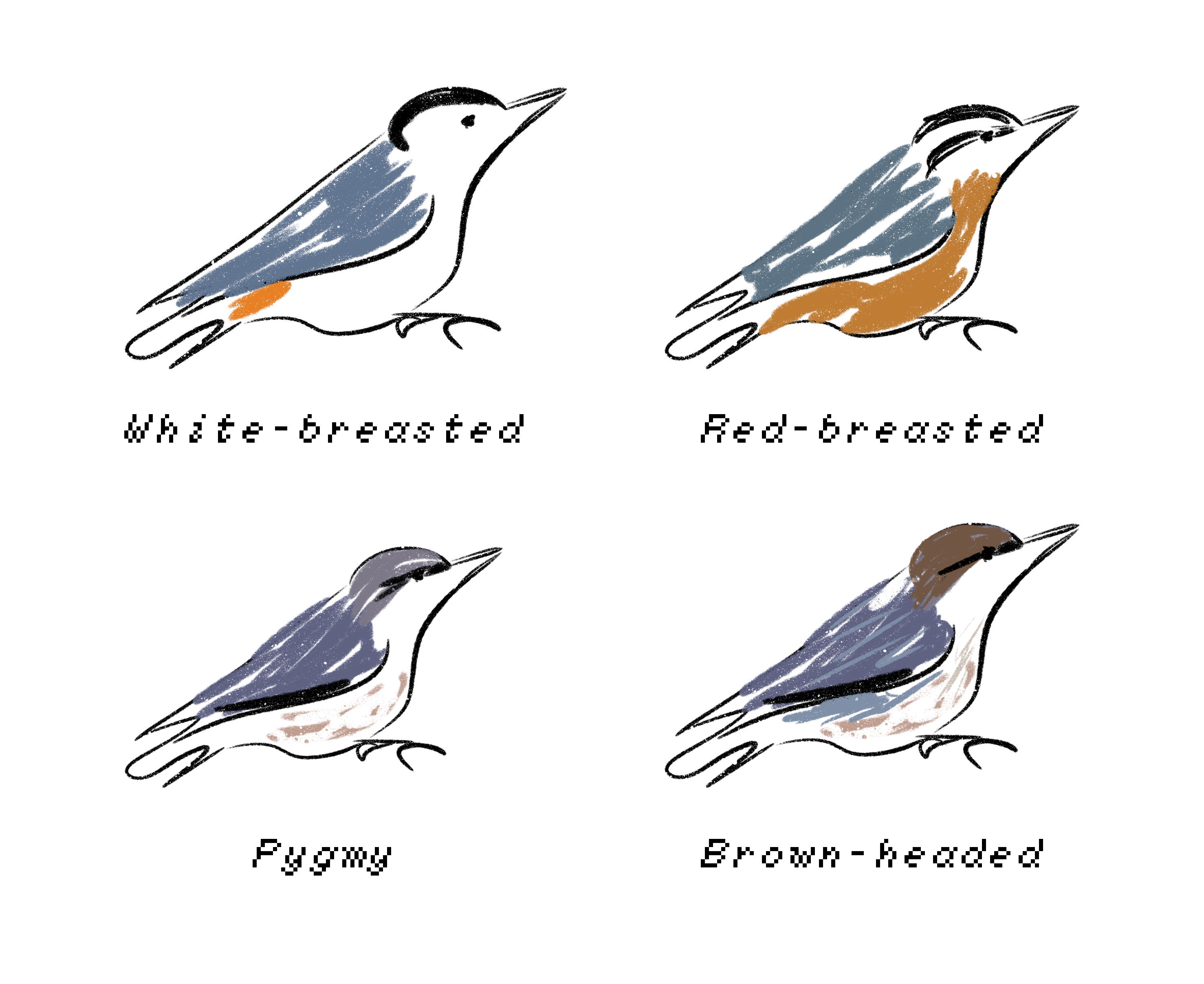 4 nuthatch species are noticeable in the U.S.
