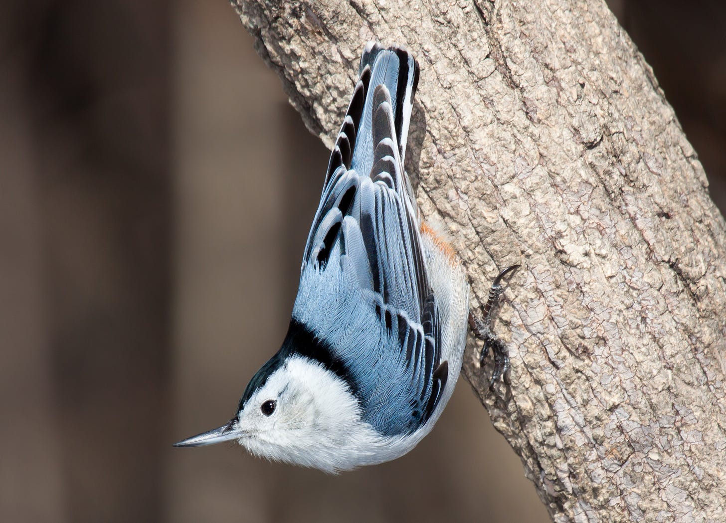 Nuthatches are omnivorous, but their signature move—wedging a nut into a crevice, then hammering it open with that baddie bill—is what gives the group its English name.